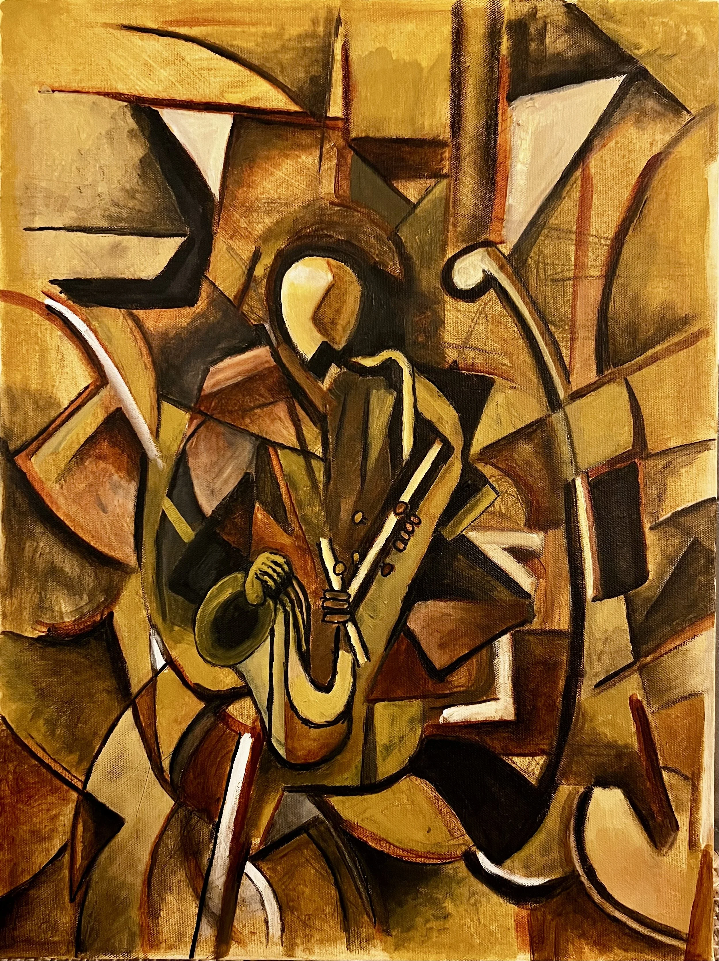 A striking celebration of music and abstraction, Cubist Serenade reimagines the timeless figure of the jazz musician through a cubist lens. Angular forms and warm golden tones converge to create rhythm and harmony on canvas, echoing the improvisational spirit of jazz itself.